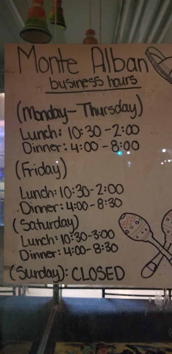 Monte Alban 2 Mexican Restaurant Menu